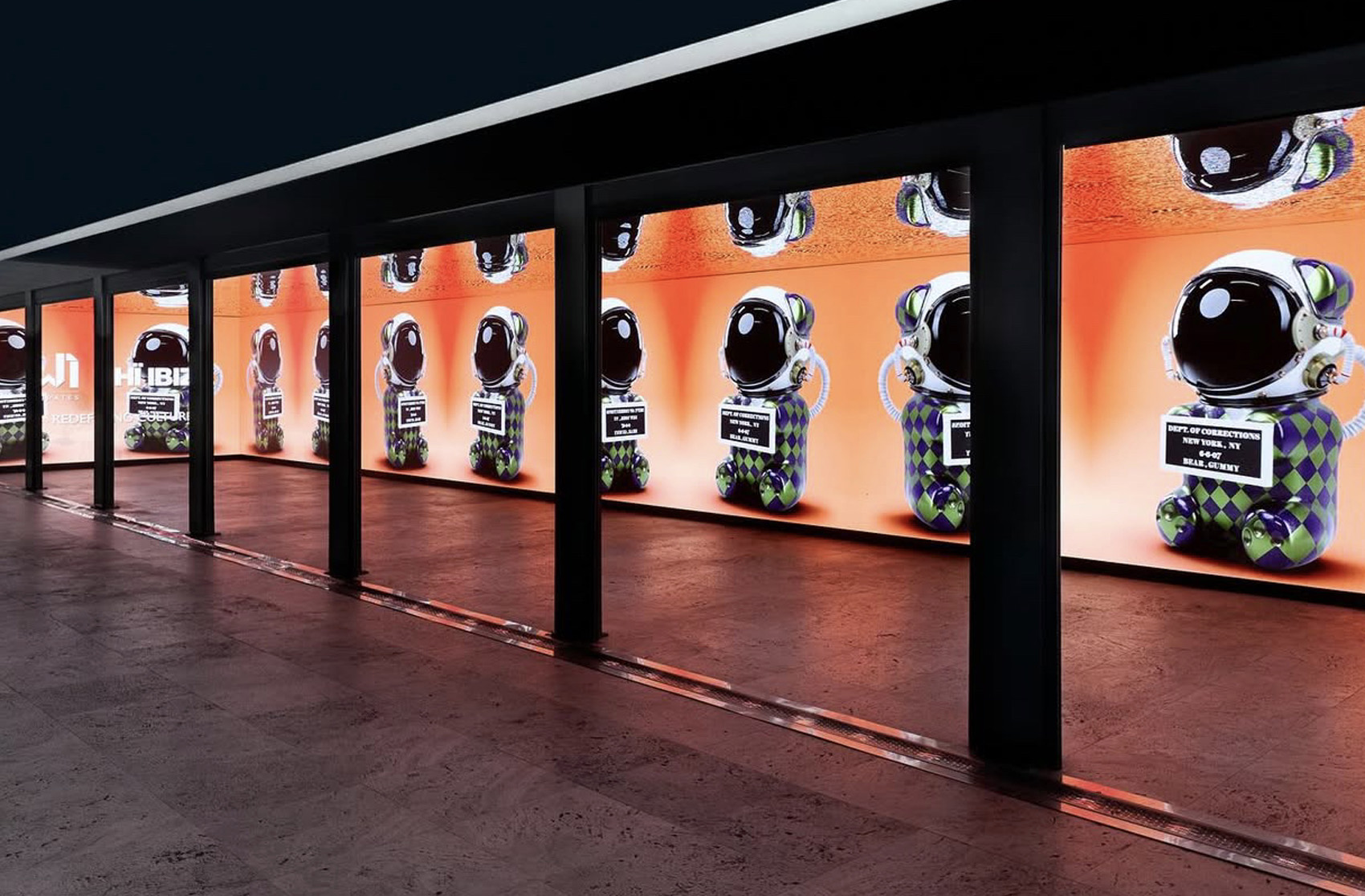 The Tipi Garden hosts WhIsBe’s unmistakable gummy bear sculptures, including a six-foot green edition, emblematic of his playful yet iconic presence in the contemporary and digital art world. Additional works in four-foot and twelve-inch formats extend the artist’s celebrated series, available for purchase on site.