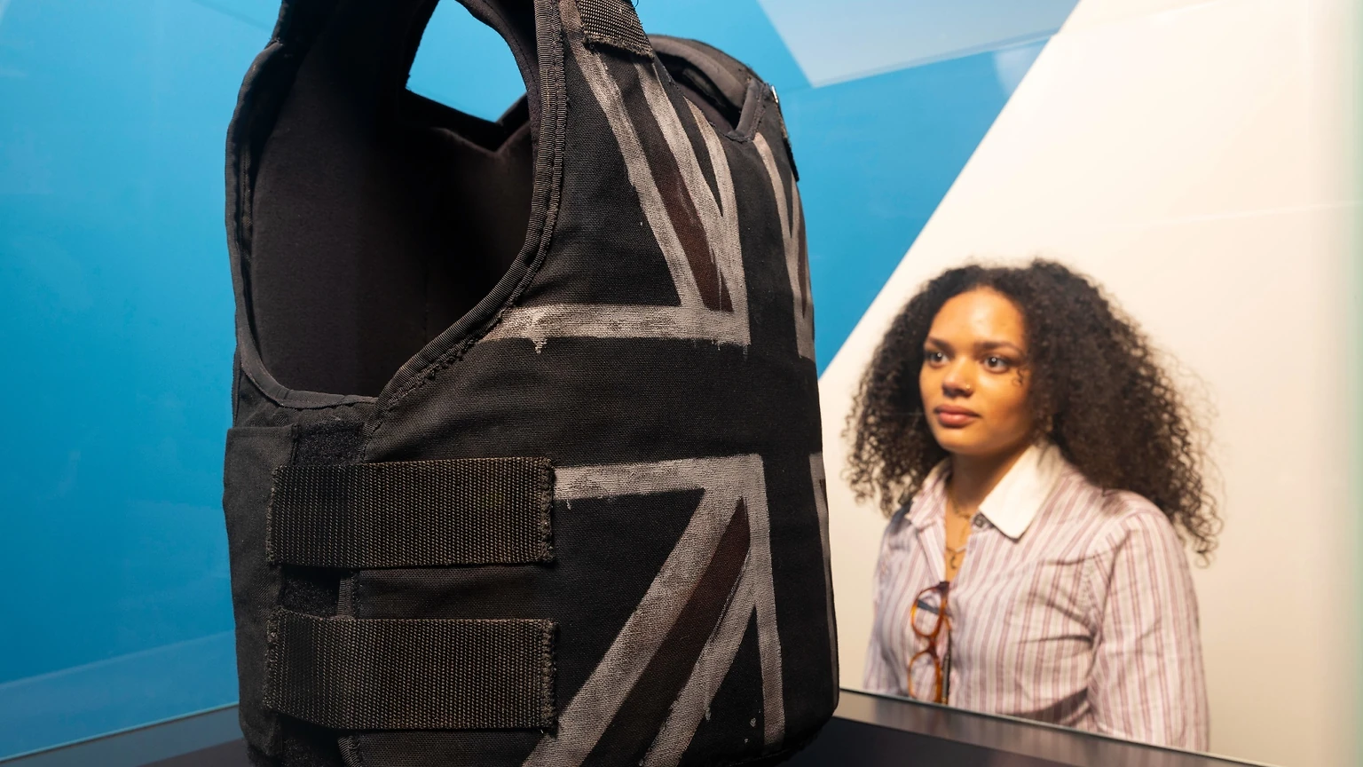 A key highlight is Stormzy’s Banksy-designed stab-proof vest, worn during his 2019 headline performance at Glastonbury Festival. Created by Banksy, the vest features a spray-painted Union Jack and has come to symbolise broader conversations around identity, visibility and systemic inequality—threads that resonate throughout the exhibition.